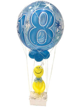 In einem Netz schwebt ein Helium Bubble Ballon mit der Geburtstagszahl.